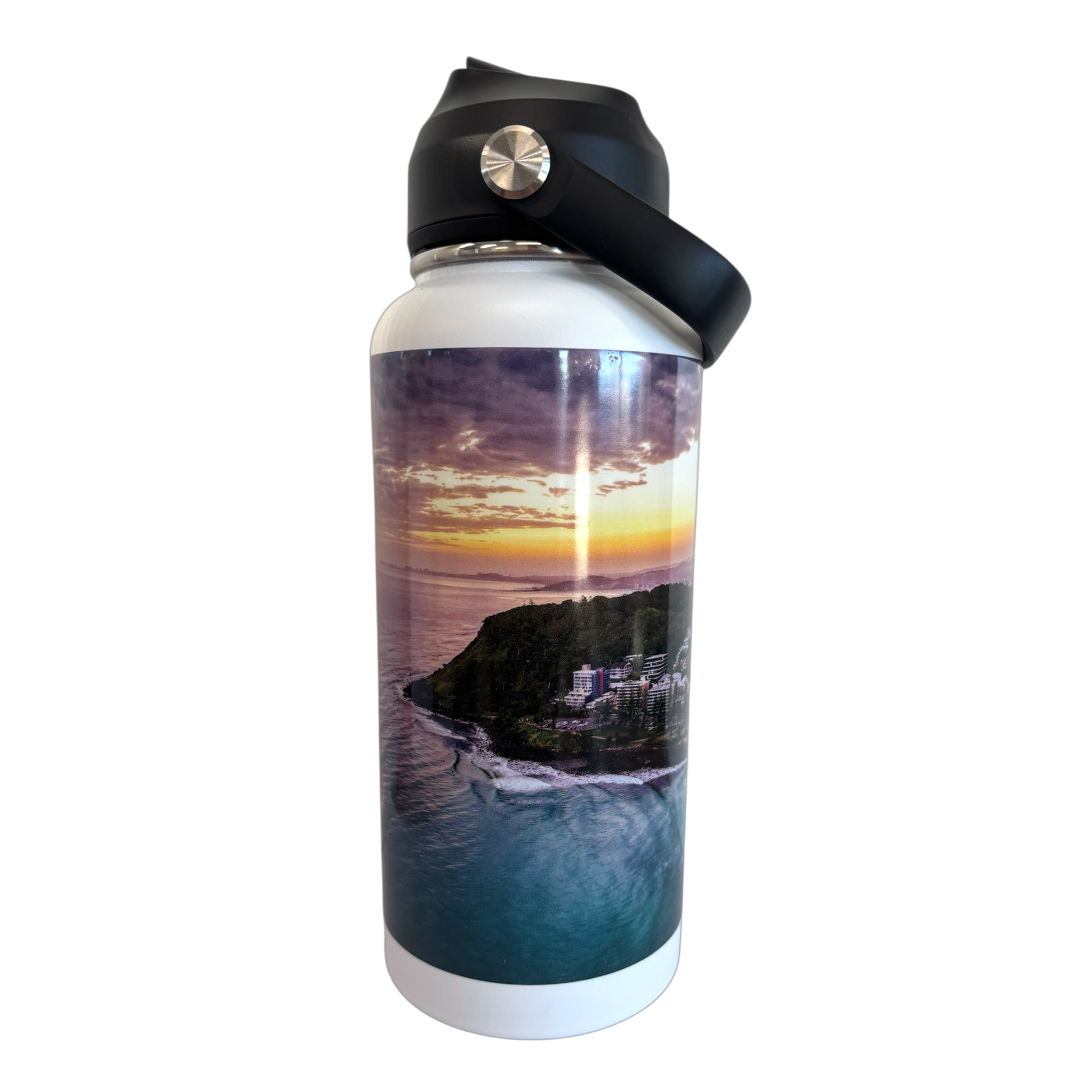 Design Story: This stunning Burleigh Beach image captures the essence of Burleigh Heads. Each bottle features this exclusive photography printed in high-definition, making it a unique piece of functional art.